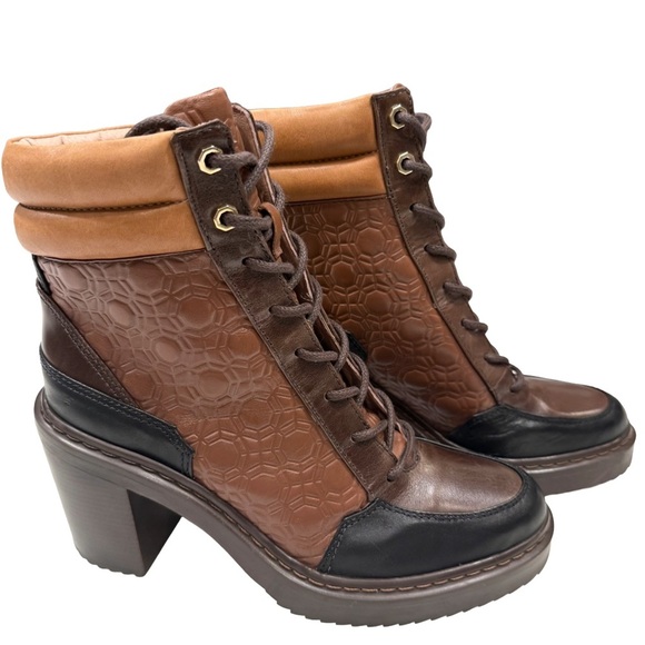 Brand New without box. Women’s Louise et Cie brown & tan leather lace up boots. Embossed leather accents, block heel. Size 8.5 MSRP $198