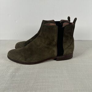 Louise et Cie Lo-Teshy Green Leather Suede Boots Womens Side 10 M / 42 pull on ankle boots leather upper/lining. Man made sole. Scuffs on soles and heels .