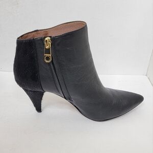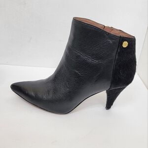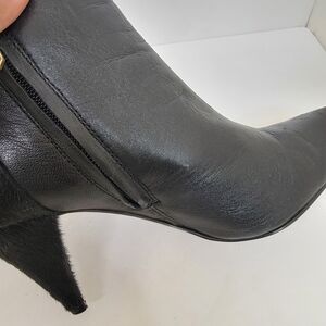 Louise et Cie Pointed Toe Black Leather & Cow Hair Heel Booties Size 7.5