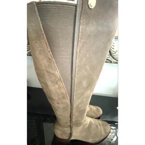 Louise et Cie, Suede leather tall gray boots size 7 m. Back Zipper leather insole elastic inset gold tone logo tag. Beautiful Preowned Condition.