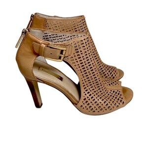 Louise et Cie Tan Genuine Leather High Heel Ankle Booties Sandals Cut-Out 5.5