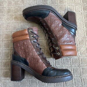 Louise et Cie Vampa Lace-up Combat Boot Women 11 Brown Chucky Stacked Heel Ankle