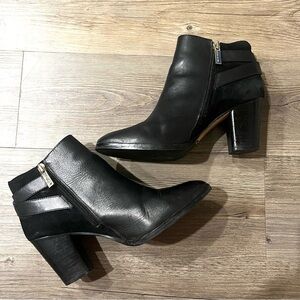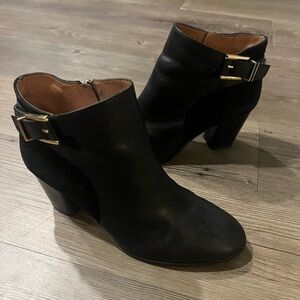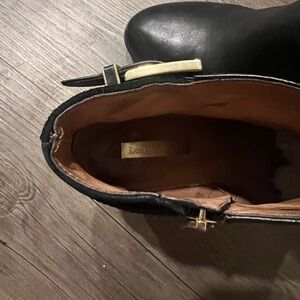 This is one of my favorite brands of boots. Has a suede back and leather front. With gold hardware. Size 7.5 light but normal wear on the back heel.