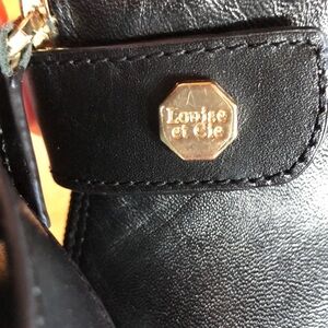 Louise et Cie black leather ankle boots back zip snap strap w logo 7.5