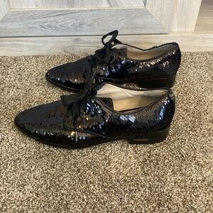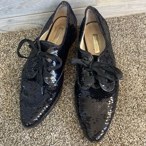Louise et Cie black sequins flat shoes 7.5 loafer flat derby sequin Oxford some wear price reflects this