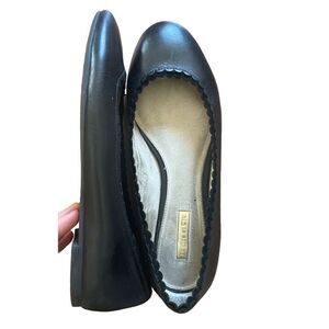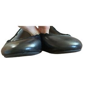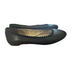 Louise et Cie Lo-Caynlee Smooth Black Leather Ballet Flats Ruffled Edges 8.5M