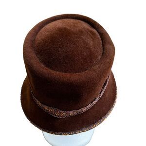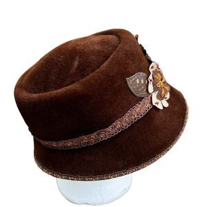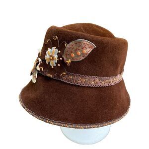 Louise Green Brown Felted Flower embellishment Bucket Hat