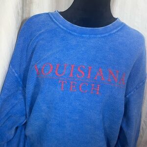 Show your school pride with this cozy blue crew neck sweater from Louisiana Tech. Perfect for casual wear and staying warm.