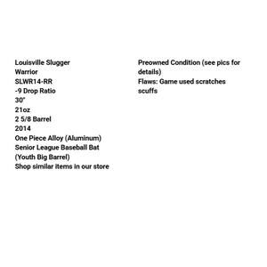 Louisville Slugger Warrior SLWR14-RR -9 Drop 30" 21oz 2 5/8 Barrel 2014 One Piece Alloy (Aluminum) Senior League Baseball Bat (Youth Big Barrel)
