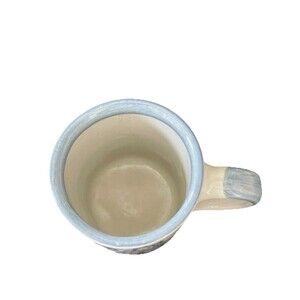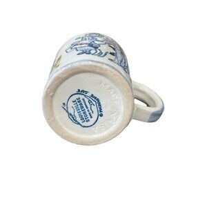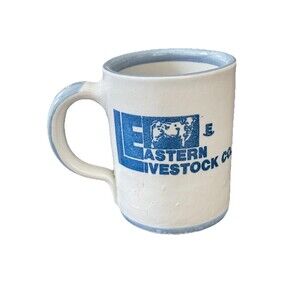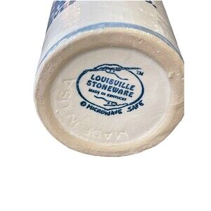 Enjoy your morning brew in style with this charming Louisville Stoneware Coffee Mug. Adorned with a delightful cow and farmer pattern, this round mug has a glossy finish and can hold up to 14 ounces of your favorite beverage. Standing at 4 inches tall, it's the perfect size for a cozy cup of coffee or tea. Crafted from high-quality ceramic and stoneware, this mug features a traditional art pottery production style and technique, making it a unique addition to any collection. Proudly made in the United States, this vintage piece is a testament to classic design and functionality, complete with a printed backstamp for authenticity.