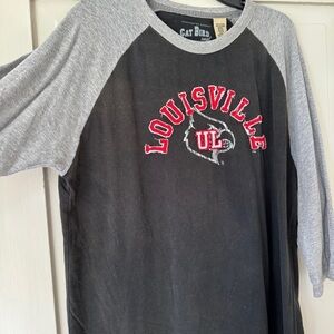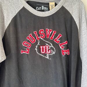Louisville U of L Black Raglan Baseball Tee Black and grey trim Cat Bird seat 2XL