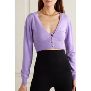 LOULOU STUDIO CARDIGAN WOMENS M MEDIUM BEIGE BATIKI CASHMERE CROPPED BUTTON UP