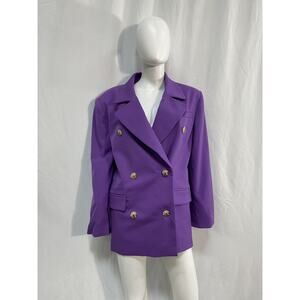 Loulou Studio 'Harat' Purple Wool Blazer Size XS: double-breasted button closure, padded shoulders, side flap pockets and breast welt pocket, buttoned cuffs, woolen suiting fabric.