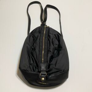 Loume Black Nylon and Vegan Leather Slouchy Backpack, Gold hardware