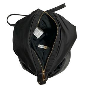 Loume Triangle Slouch Sling Backpack Hobo Bag. Black nylon and vegan leather straps bottom and detail. Gold center zip. Round bottom with triangular shape. Slung over shoulder, or over the shoulders. Plenty of space and inside zipper pocket. So roomy! Very cool. Funky yet utilitarian. 17” Tall, 9”x10” oval shaped bottom. Beautiful