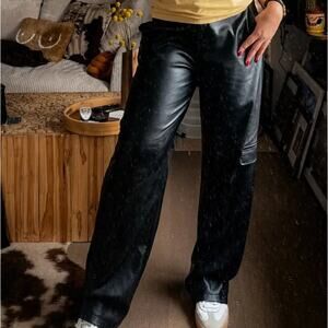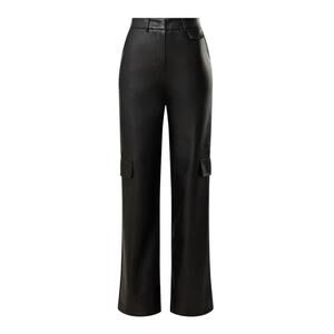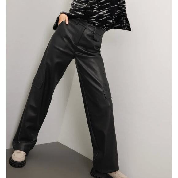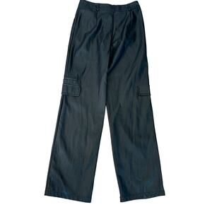 Buttery faux leather wide leg, high rise in a vegan leather light stretch relaxed cargo pockets, grunge with a trendy edge.