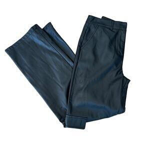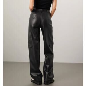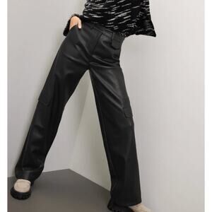 Louna Black Faux Leather Cargo Pants MEDIUM Wide Leg Trouser Designer $180 Flaw