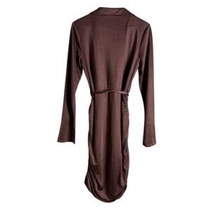 Louna Brown Jersey Long Sleeve Ruched Belted Collared Mini Dress Size XL