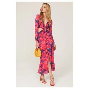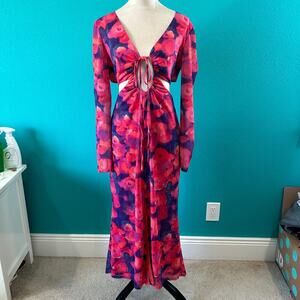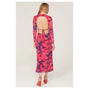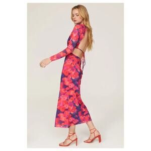 Louna Cutout Midi Dress Pink Blue Floral Open Back Cocktail Wedding Size L