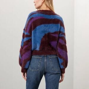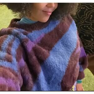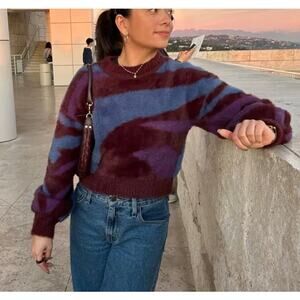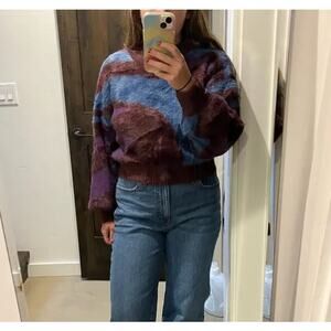 Louna Purple Blue Fuzzy Sweater SMALL Cropped Oversized Soft Cozy Crewneck $140
