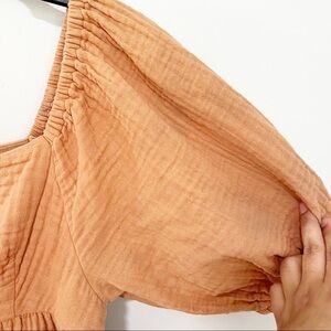 Louna Rust Tiered Puff Sleeve Smocked Mini Dress Size Small