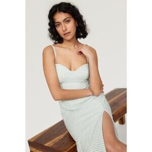 Louna Sweetheart Gingham Dress Green White Midi Side Slit Sleeveless Sz S