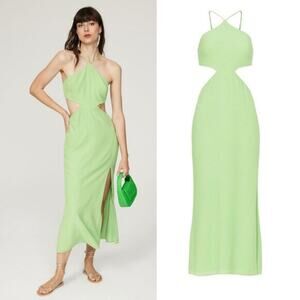 Louna Halter Cutout Green Side Slit Elegant Hourglass Crepe Midi Dress Gown S