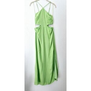 Louna Halter Cutout Green Side Slit Elegant Hourglass Crepe Midi Dress Gown Small
