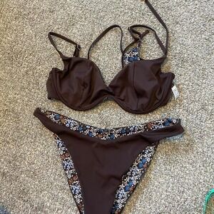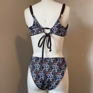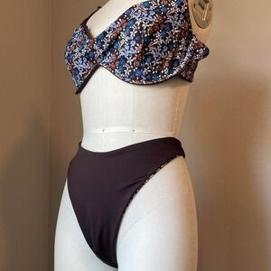 Lounge Reversible brown and blue floral boho sexy cheeky bikini set- XXL