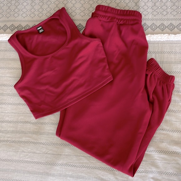 Burgundy lounge set - worn and washed once. Size says Petite M, pants are very loose fit with elastic ankle.