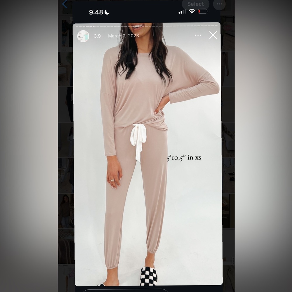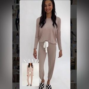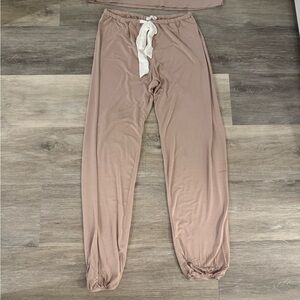 Butter Soft stretchy lounge set in sand color. This is a size XS but can fit size small. the pants have a tie waist fully adjustable. These are brand new without tags.