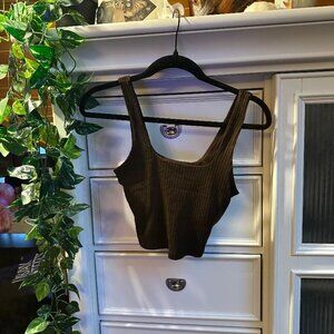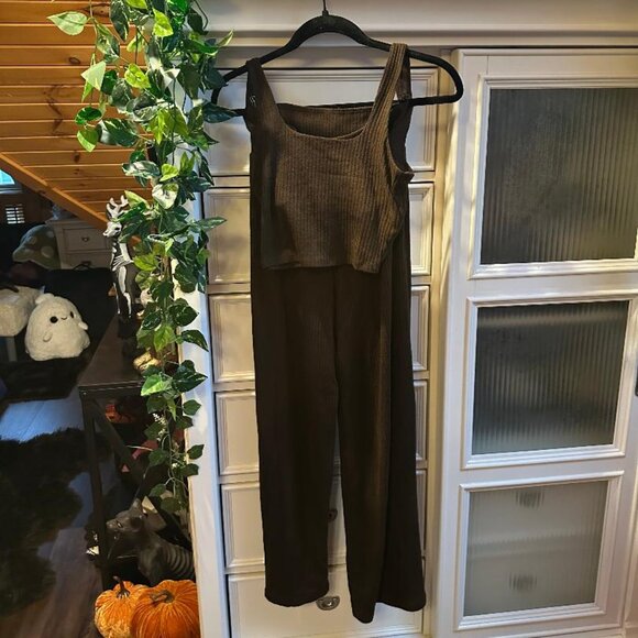 Ribbed Wide Leg Pants & Cropped Tank Lounge Set