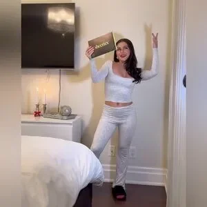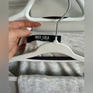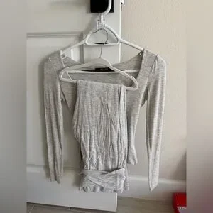 Soft light gray long-sleeve crop top with matching pull-on lounge pants. Streamlined fit and cozy stretch for relaxed wear. Simple, modern style for everyday comfort.
