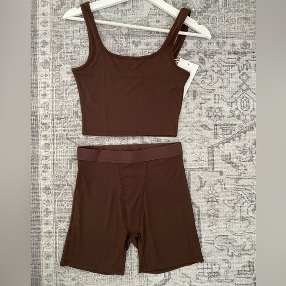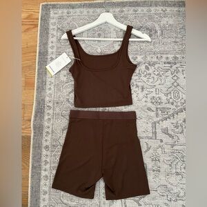 NEW Brown ribbed tank top and shorts lounge set. Scoop neck and back.