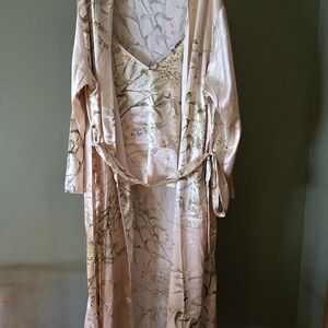 Multi piece set with shorts, cami, slip, and robe. Has its own carrying bag too. Worn once.