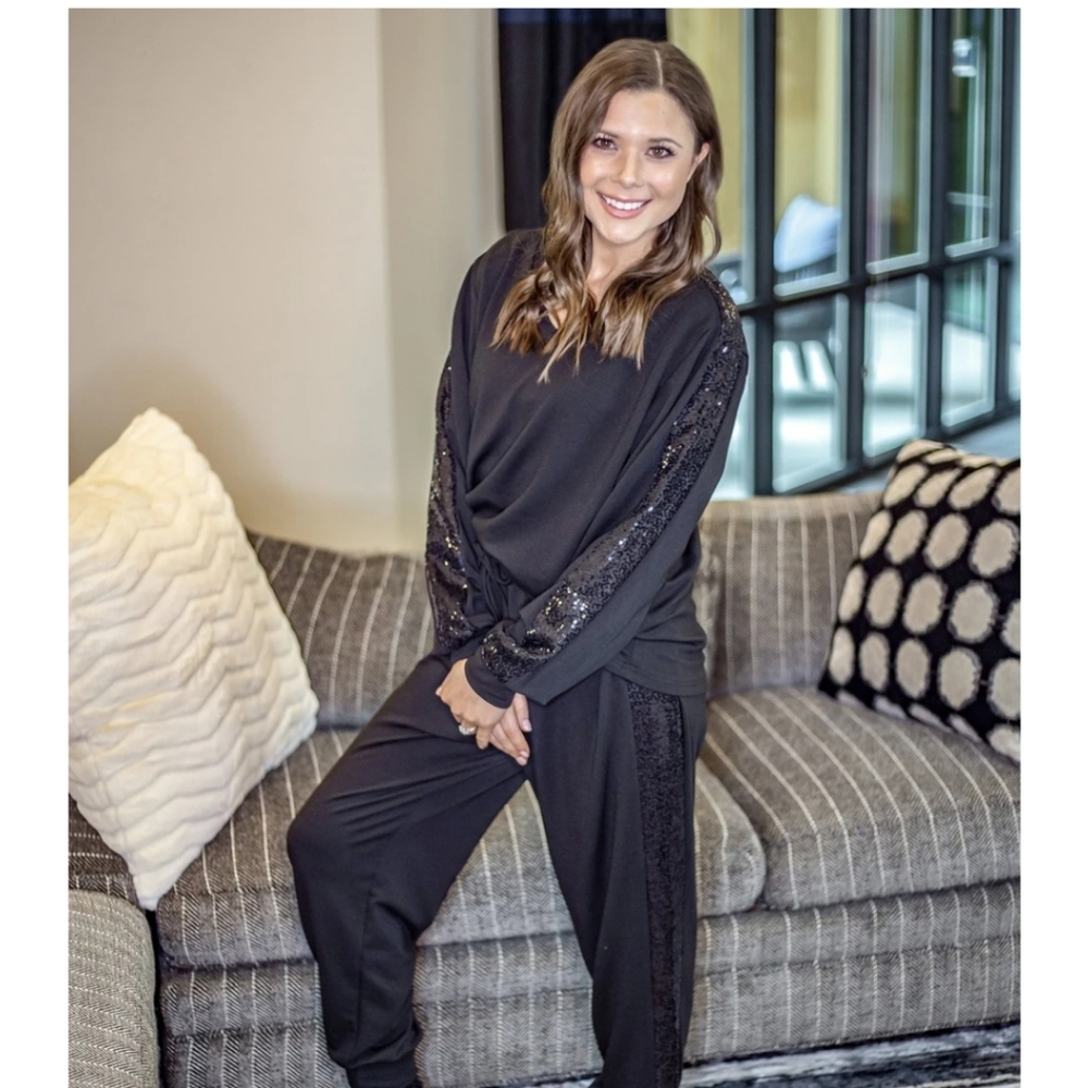 Black medium lounge set bought from a boutique don't like how the pants fit on my in the waist unable to return. my loss your gain. brand new never worn.