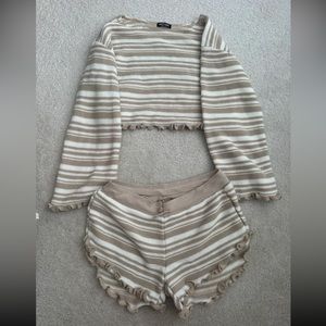 Beige and white set. Knitted soft material. Not see through at all. Never worn.