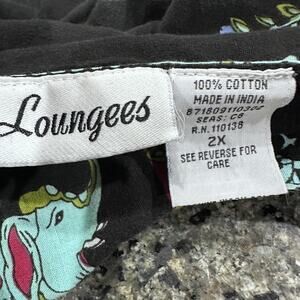 Loungees Dress Womens 2X Black Cotton Elephant Print Short Sleeve Boho Tunic