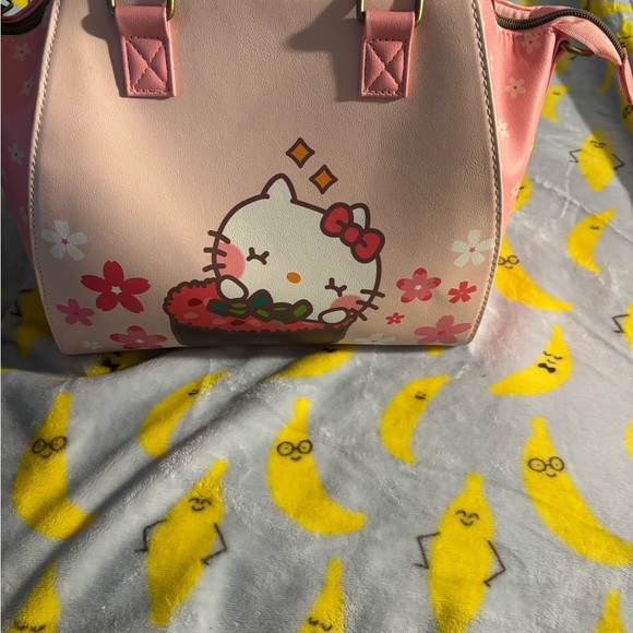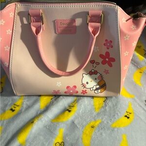 Charming Hello Kitty handbag in a delightful pink shade. Perfect for adding a playful touch to any outfit. Loungefly bag no shoulder strap included