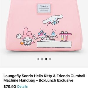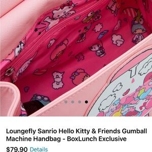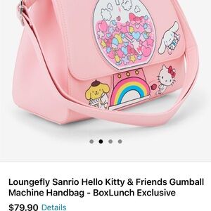 NWT Loungefly Cute pink handbag with Hello Kitty and friends. Features a colorful gumball machine design. BoxLunch exclusive