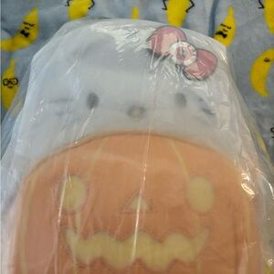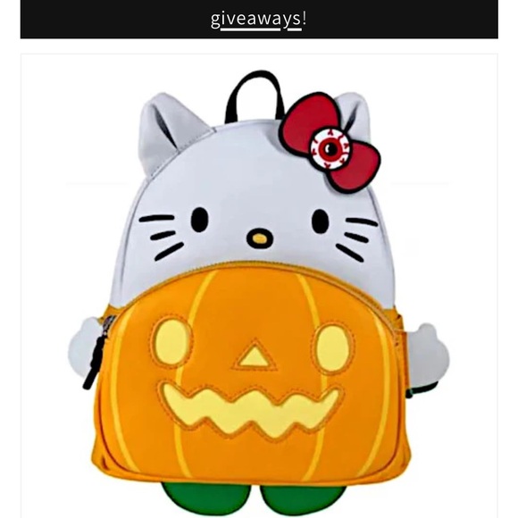 NWT Loungefly Cute Hello Kitty backpack with a pumpkin design. Features a red bow and green accents.