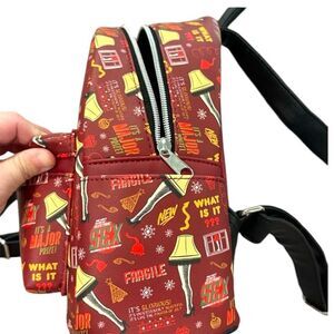 Keywords: Loungefly, mini backpack, A Christmas Story, holiday, multicolor, unisex, festive, accessory, all seasons, party, gathering, playful, practical.