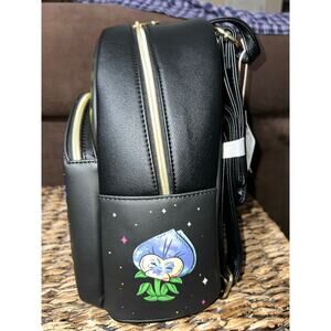 Taking a trip down the rabbit hole? Don't forget to bring a few essentials! This Alice in Wonderland mini backpack features a cameo design on the front zipper pocket, depicting a silhouette of Alice surrounded by flowers, the Cheshire Cat and more icons. Comes with adjustable straps and interior drop pocket.