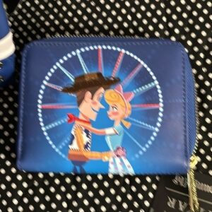 This Loungefly accessory set includes a vibrant blue mini backpack and matching wallet, both adorned with playful character designs. Crafted from durable faux leather, these pieces offer a stylish and cohesive look. Ideal for collectors, this set combines functionality with a touch of whimsy. Brand new never used.