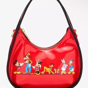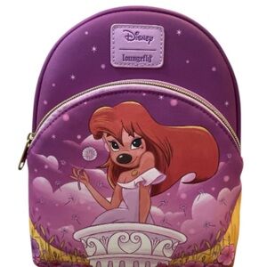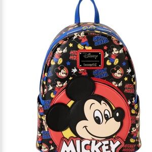 Playful EPCOT-themed mini backpack by Loungefly. Colorful printed exterior with whimsical park icons. Front zip pocket and main compartment for organized storage. Padded straps for comfortable carrying. Durable construction for everyday use.