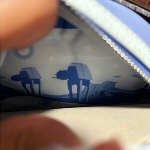 Loungefly bag with AT-AT design. Features blue and cream colors.