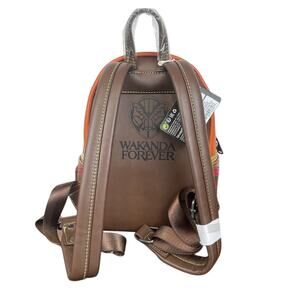 Rise and embrace the legacy of Wakanda. The Loungefly Black Panther Okoye Cosplay Mini Backpack takes the form of one of Wakanda’s fiercest warriors. On the front, Okoye’s traditional necklace and belt accompany the designs of her battle outfit. Turn the bag around to find the logo of Marvel Studios’ Black Panther: Wakanda Forever
