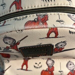 Stylish Loungefly backpack. Features Halloween-themed print. Cream base with gray straps. Perfect for fans of spooky designs. Had some wear. See photos 🎃