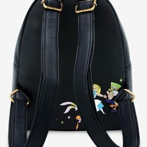 NWT glow-in-the-dark Alice in Wonderland mini backpack features all of your favorite characters from the Disney classic including Cheshire Cat and The Mad Hatter on the front, sides and back. Comes with interior drop pocket and front zipper pocket.