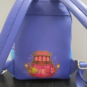 You’ll be bubbling with joy, bobbing along while wearing the Loungefly Bedknobs and Broomsticks Underwater Mini Backpack! It’s a vibrant scene of fish, marine life, and humans such as Miss Price. Before you jump on the bed and twist the knob for your next journey, pack your essentials in this beautiful backpack. The Bedknobs and Broomsticks Underwater Mini Backpack is made of vegan leather (polyurethane). Bag has adjustable shoulder straps, sturdy metal hardware, and features: applique, embroidered, debossed, and printed details. Take note of the coordinating pattern of the inside lining fabric. This bag is an officially licensed Disney product. Bag Dimensions: 9”W x 10.5”H x 4.5”D (Please note: width is measured across the bottom of the bag.)